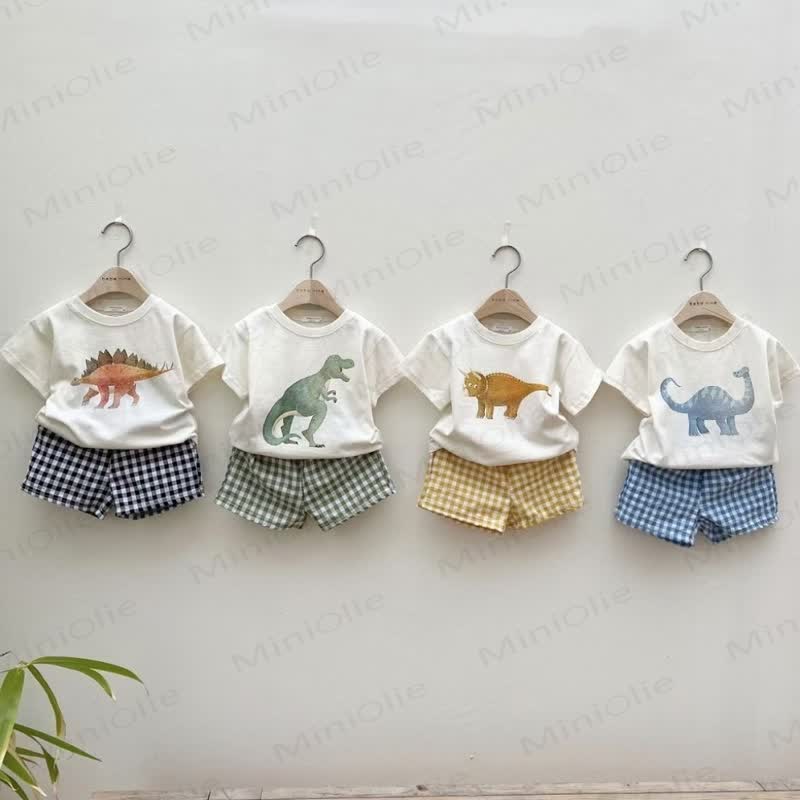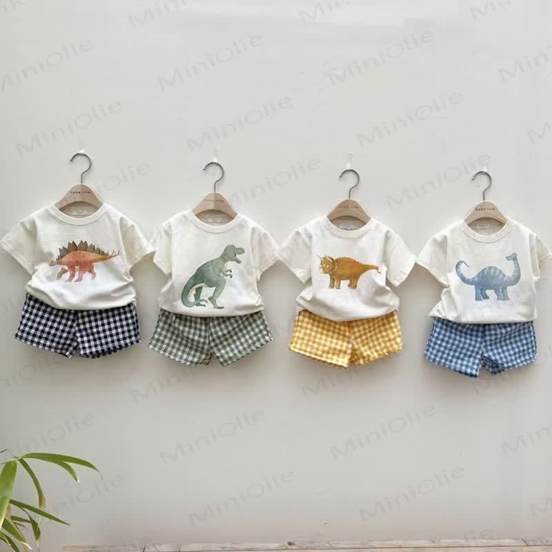 Set da 2 pezzi con maglietta e pantaloncini a quadri con motivo dinosauro per bambini