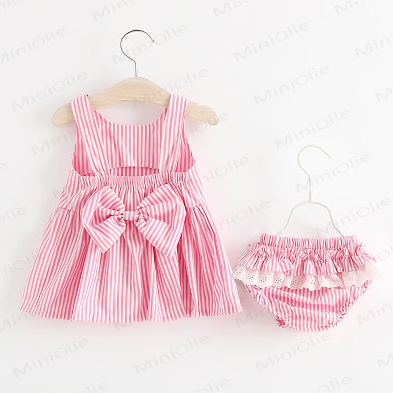Set da 2 pezzi in pizzo a righe verticali con fiocco per neonati