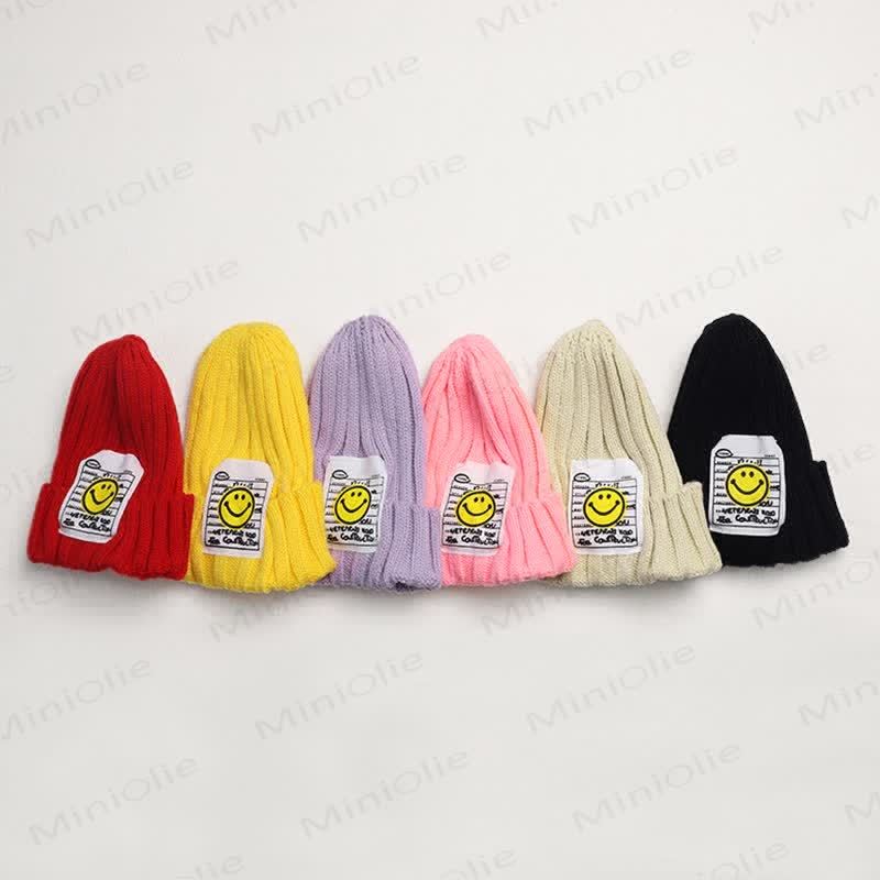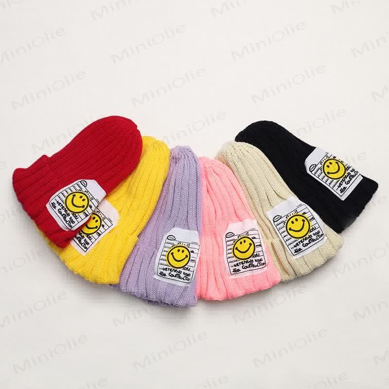Berretto con toppa sorridente per bambini piccoli, colori caramella