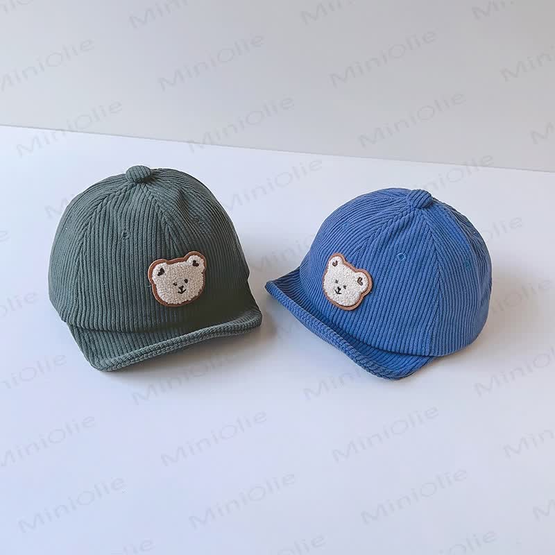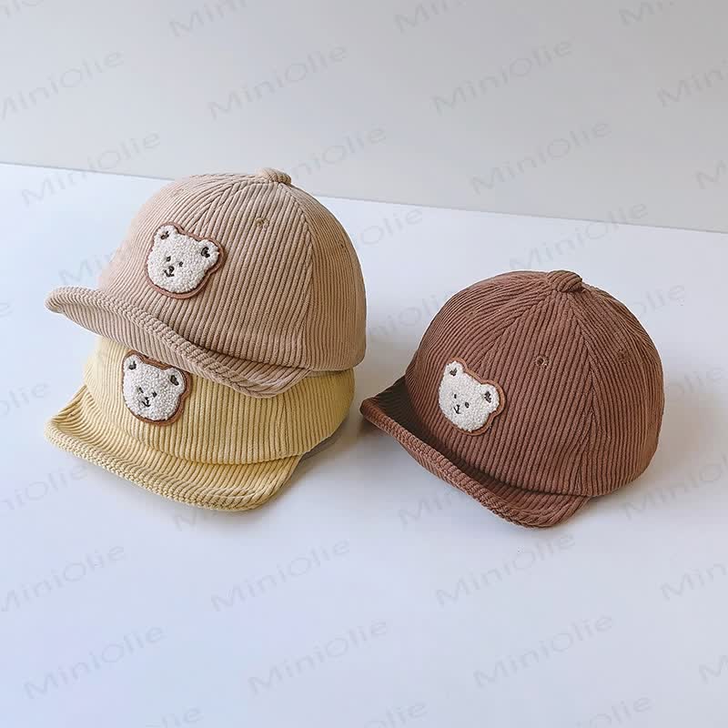 Berretto con visiera in velluto a coste "Baby Patch Bear"