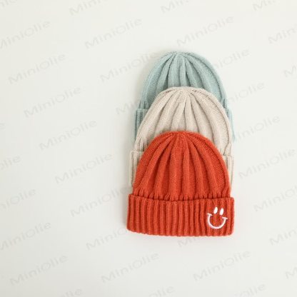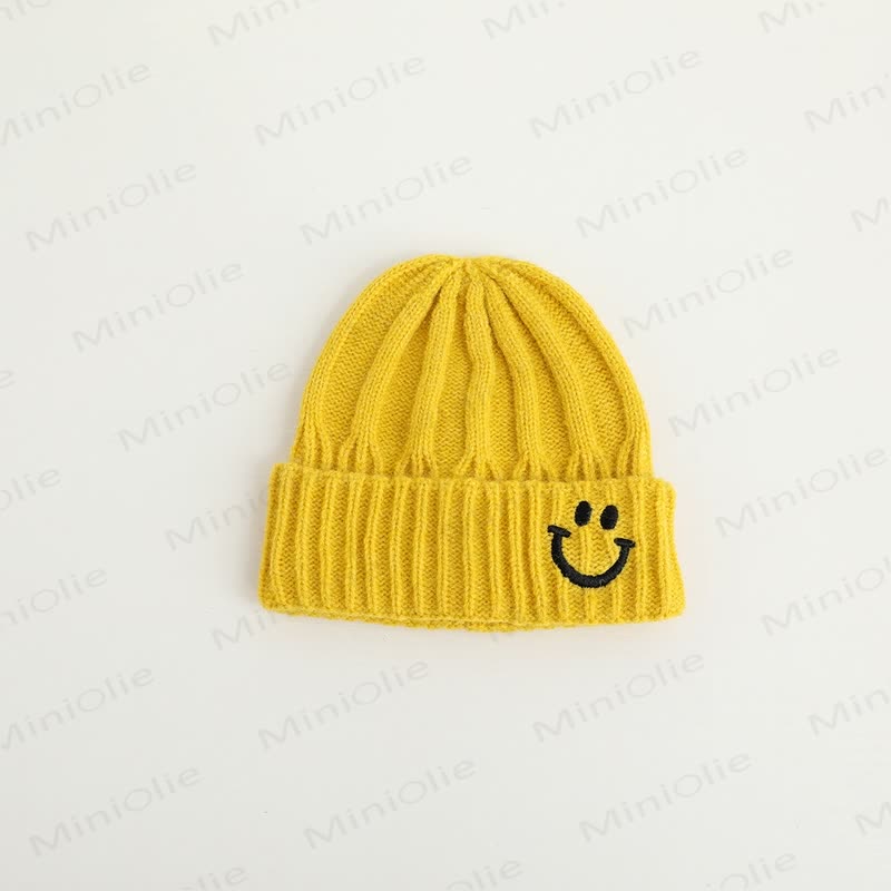 Berretto lavorato a maglia con sorriso ricamato per bambini