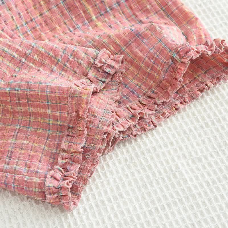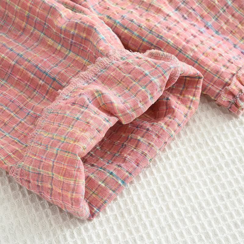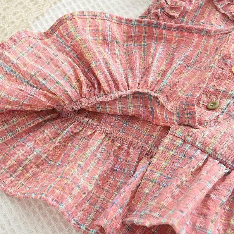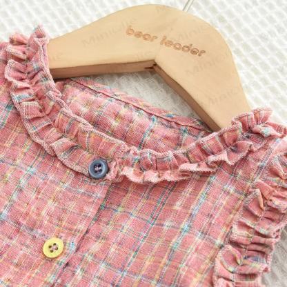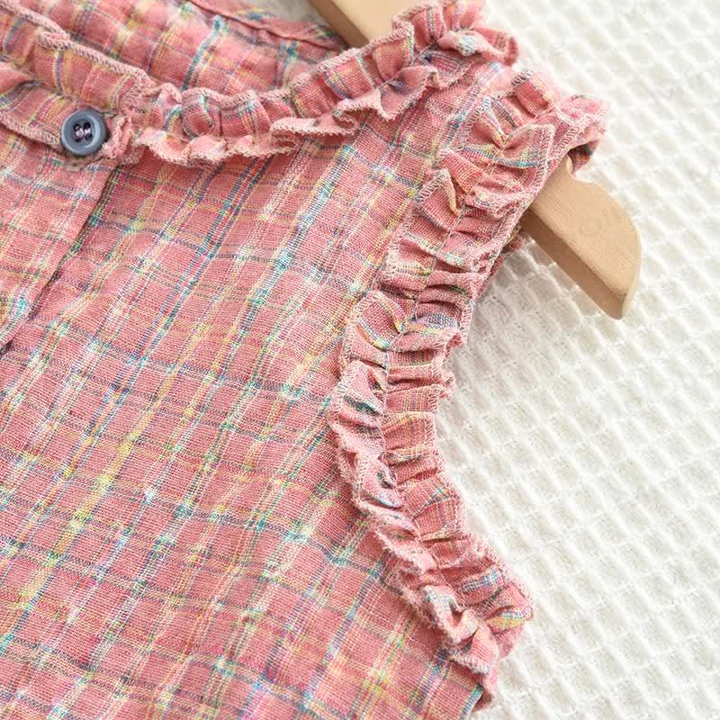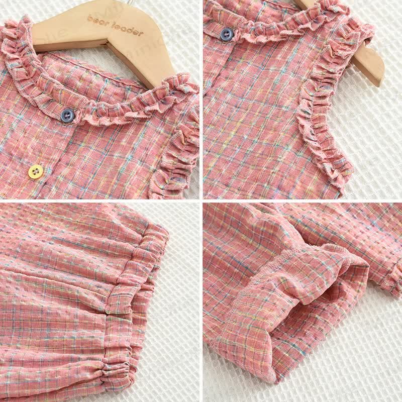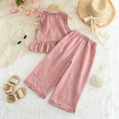 Completo casual senza maniche a quadri rosa per bambini, 2 pezzi