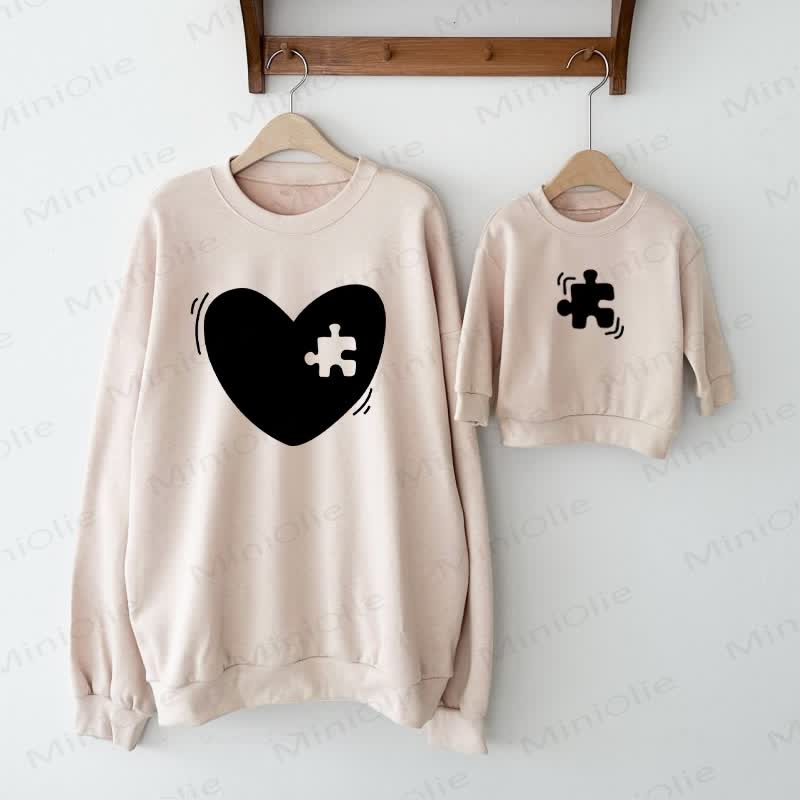 Felpa con puzzle a forma di cuore e scritta "Mommy and Me Family"