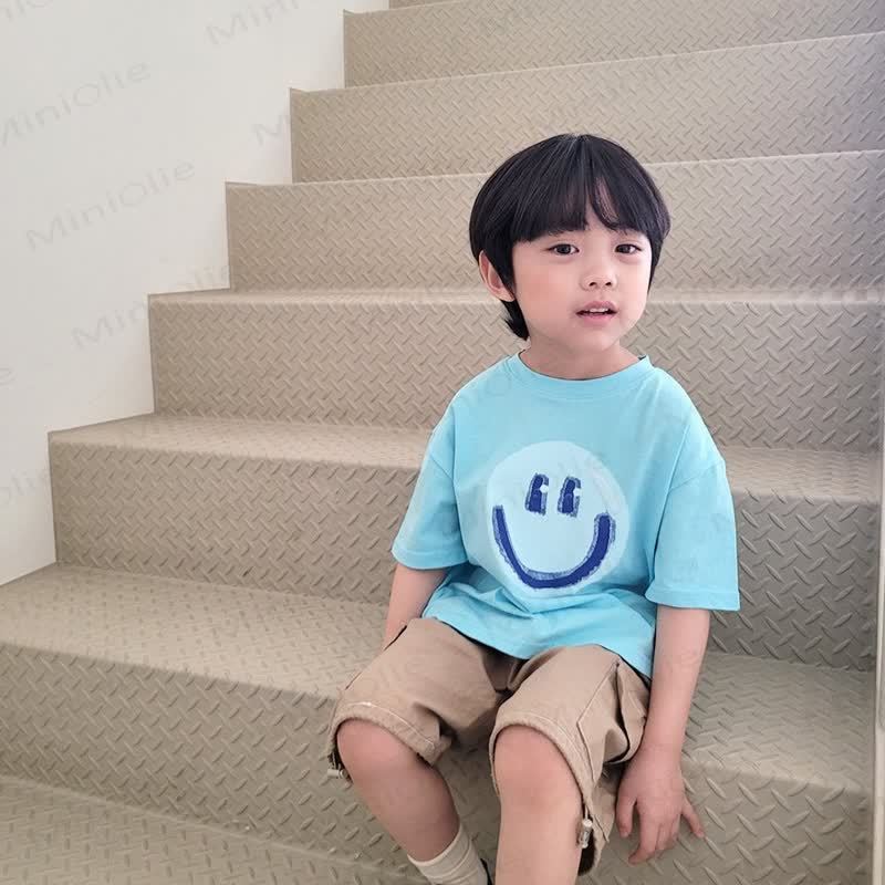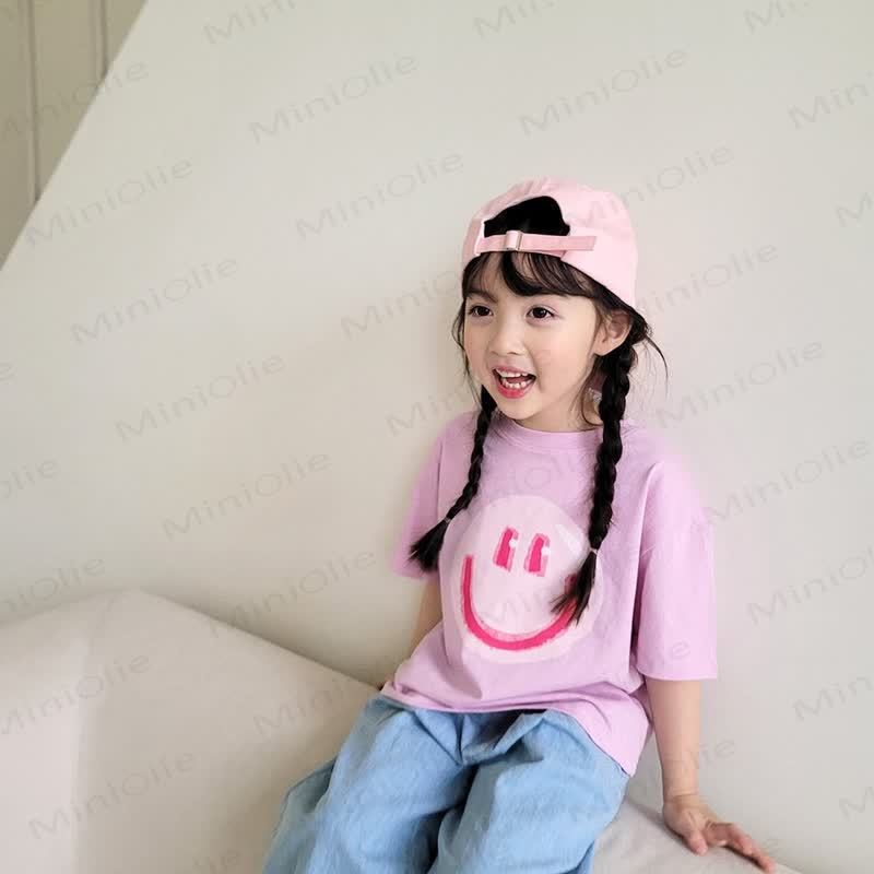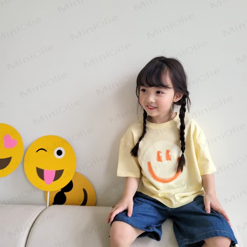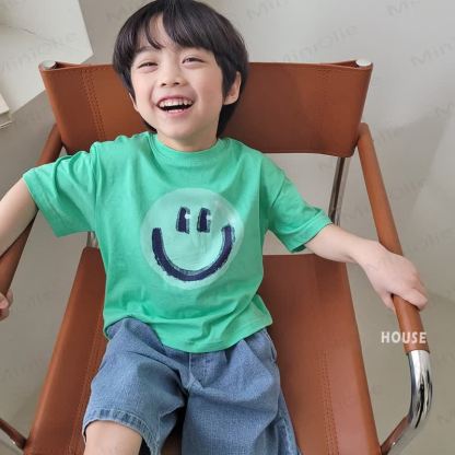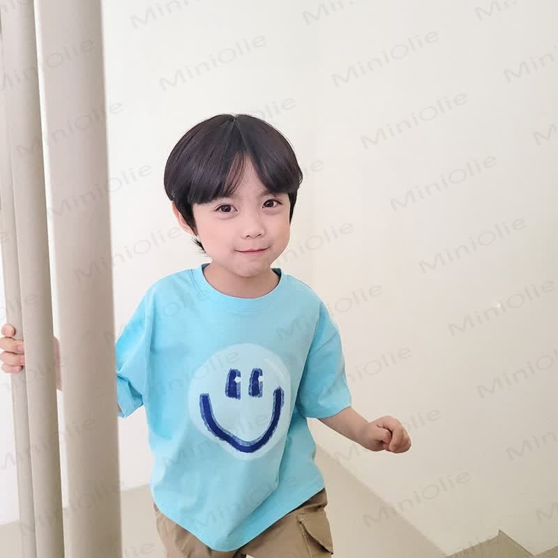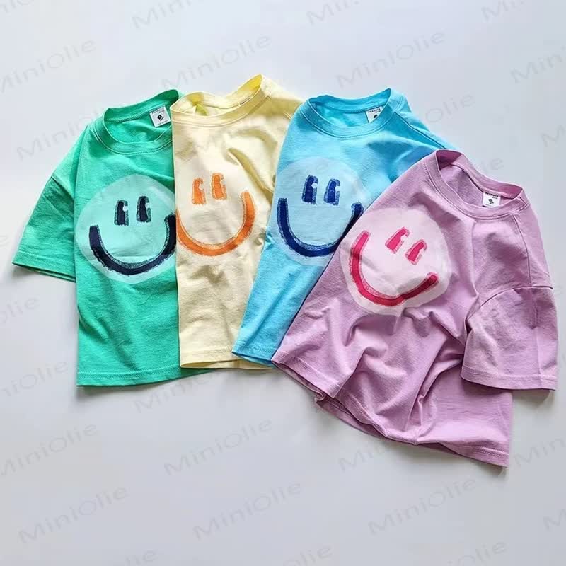 Maglietta morbida e ampia con motivo a sorriso per bambini