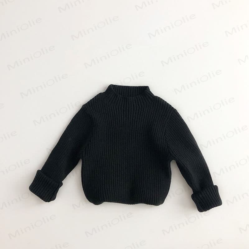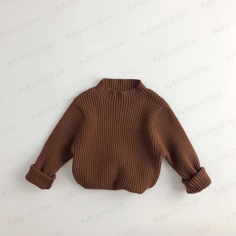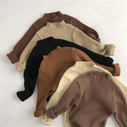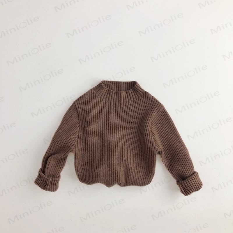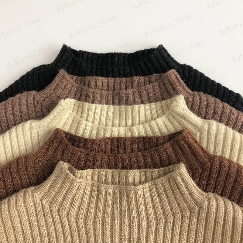 Maglione a coste in maglia a collo alto per bambini piccoli, tinta unita