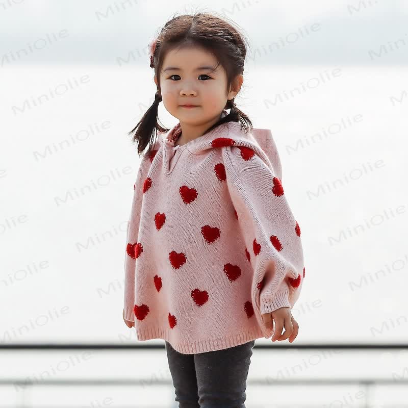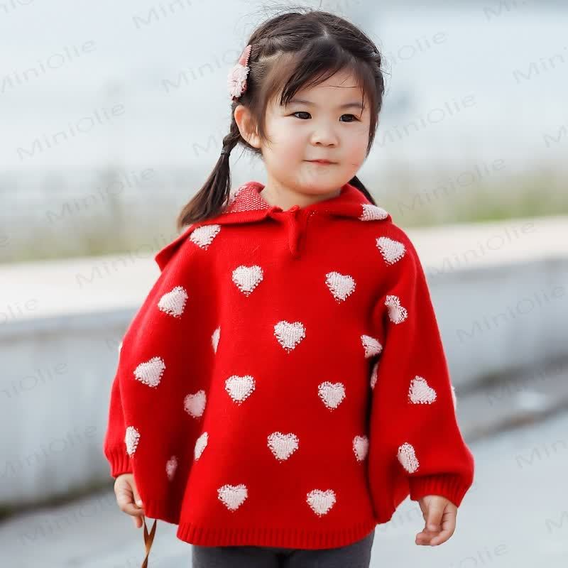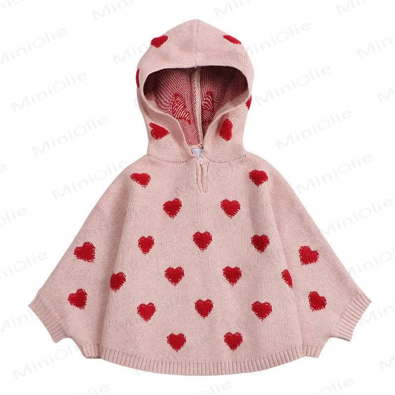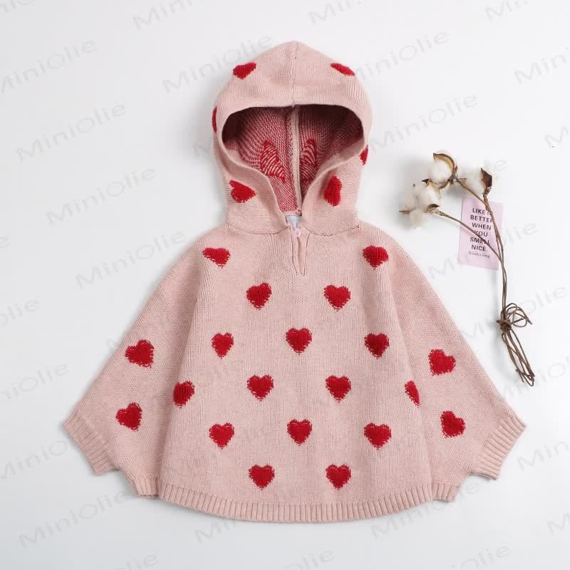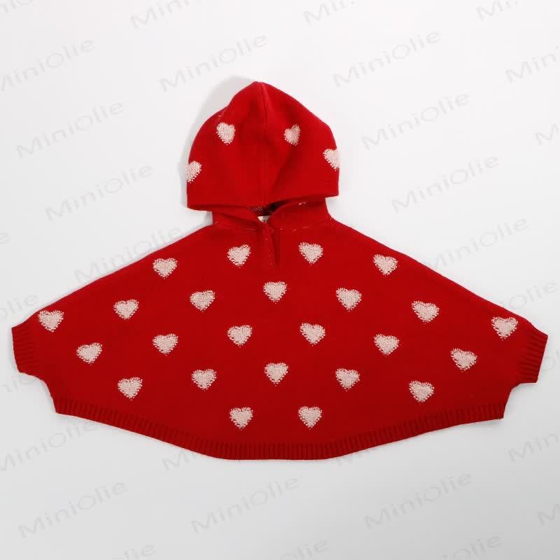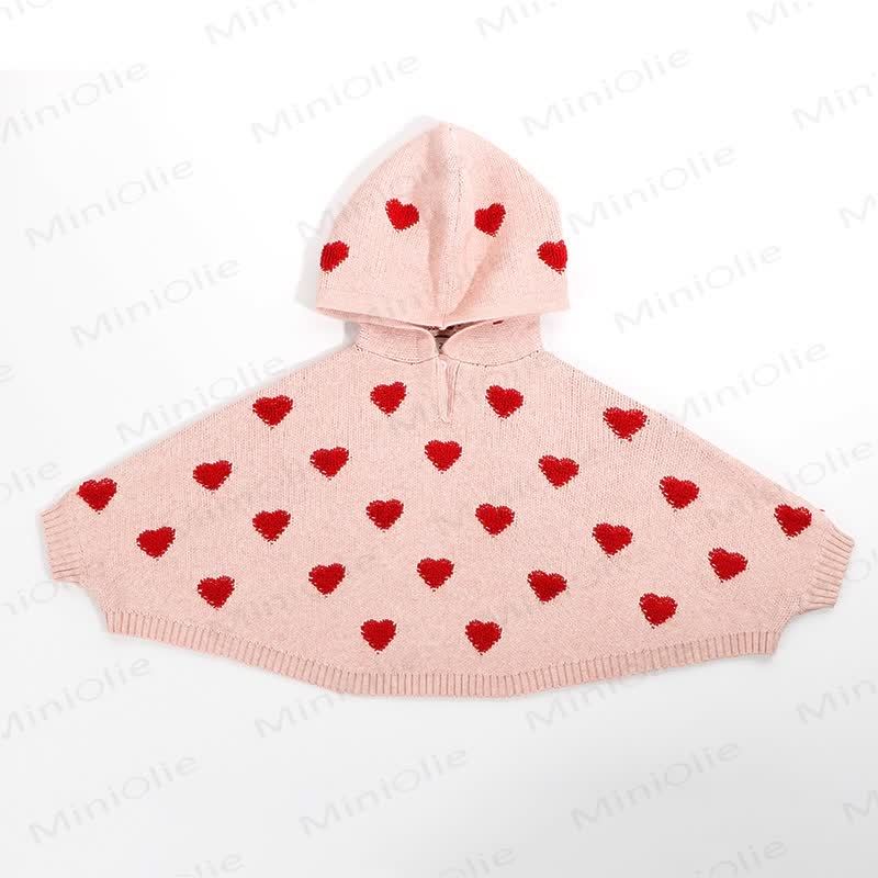 Mantella con cappuccio in maglia a forma di cuore per neonati e bambini