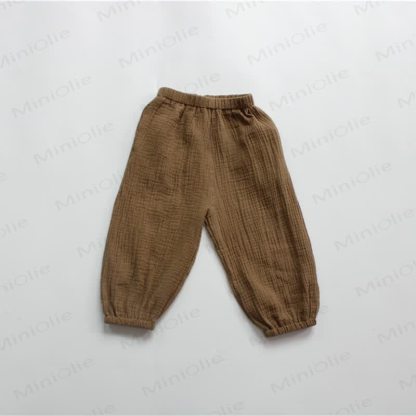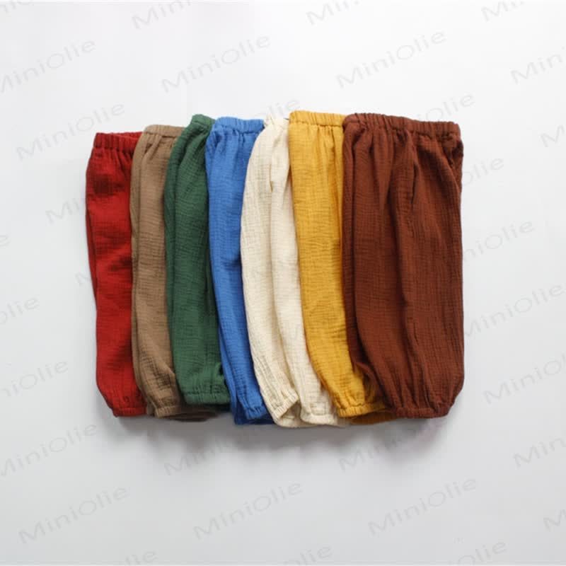 Pantaloni in lino tinta unita retrò per bambini