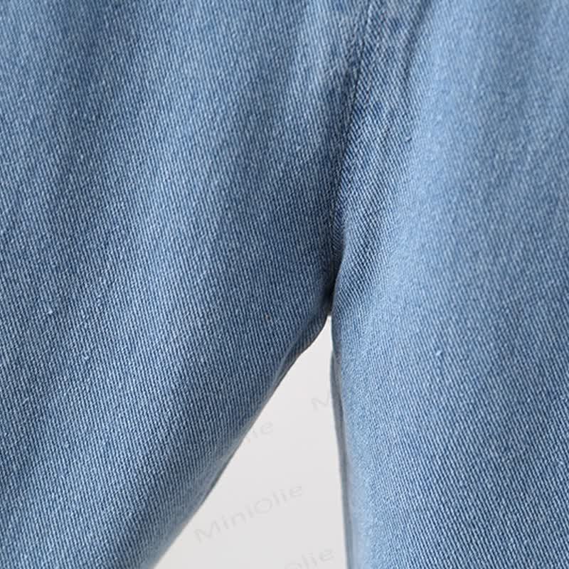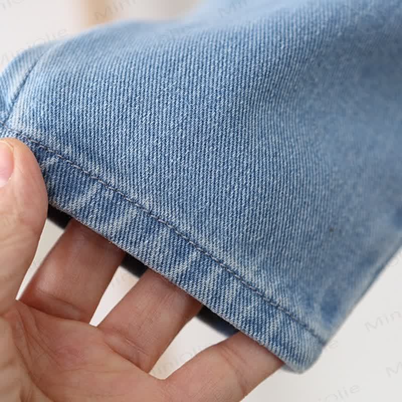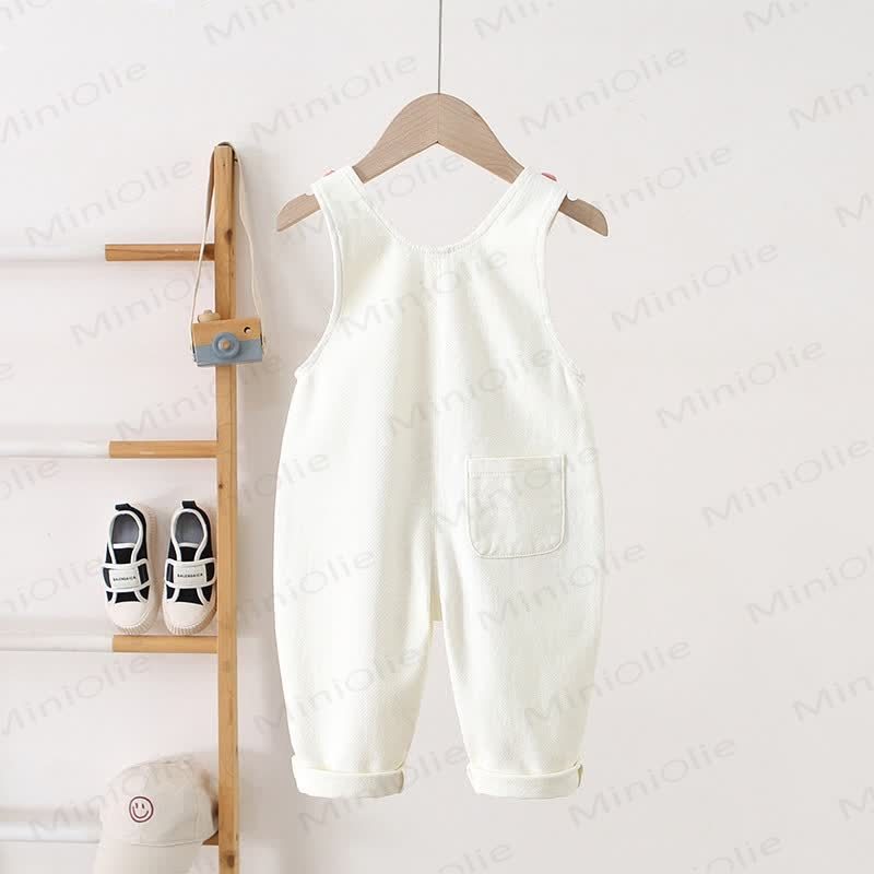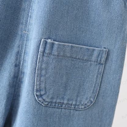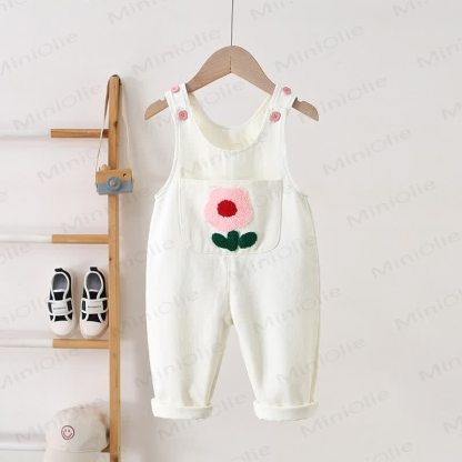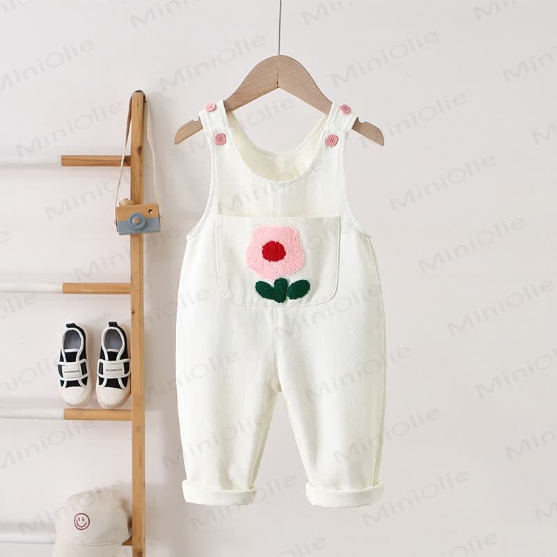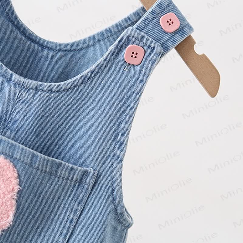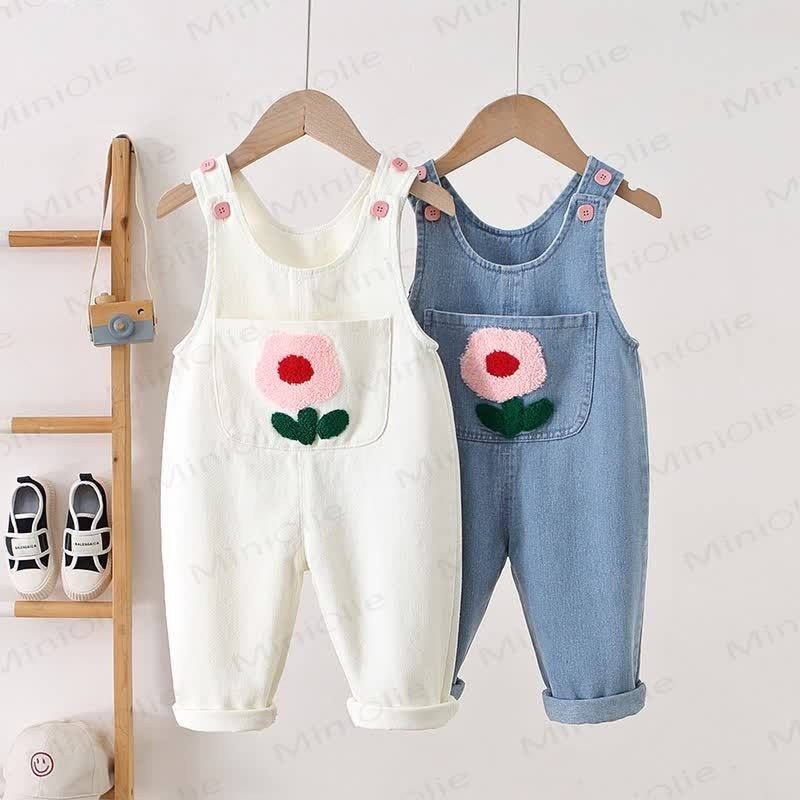 Salopette in denim con tasca e fiori ricamati per bambini