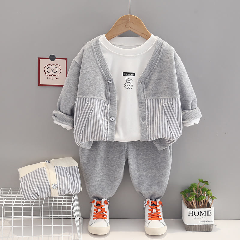 Set per bambini, camicia a righe, cardigan e pantaloni