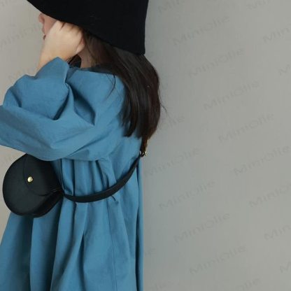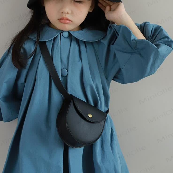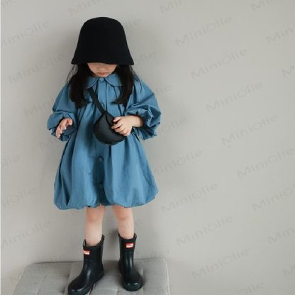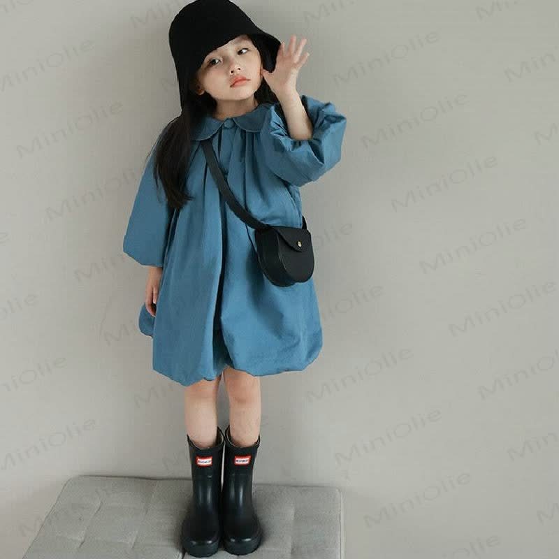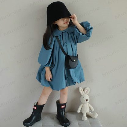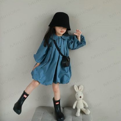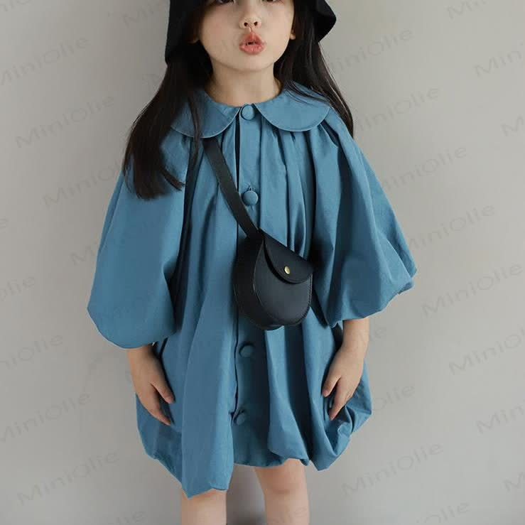 Vestito con bottoni e maniche a sbuffo blu per bambina