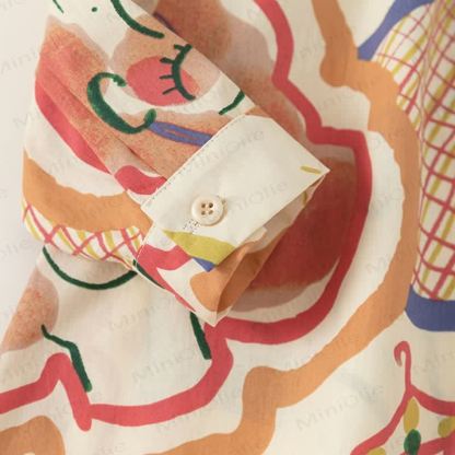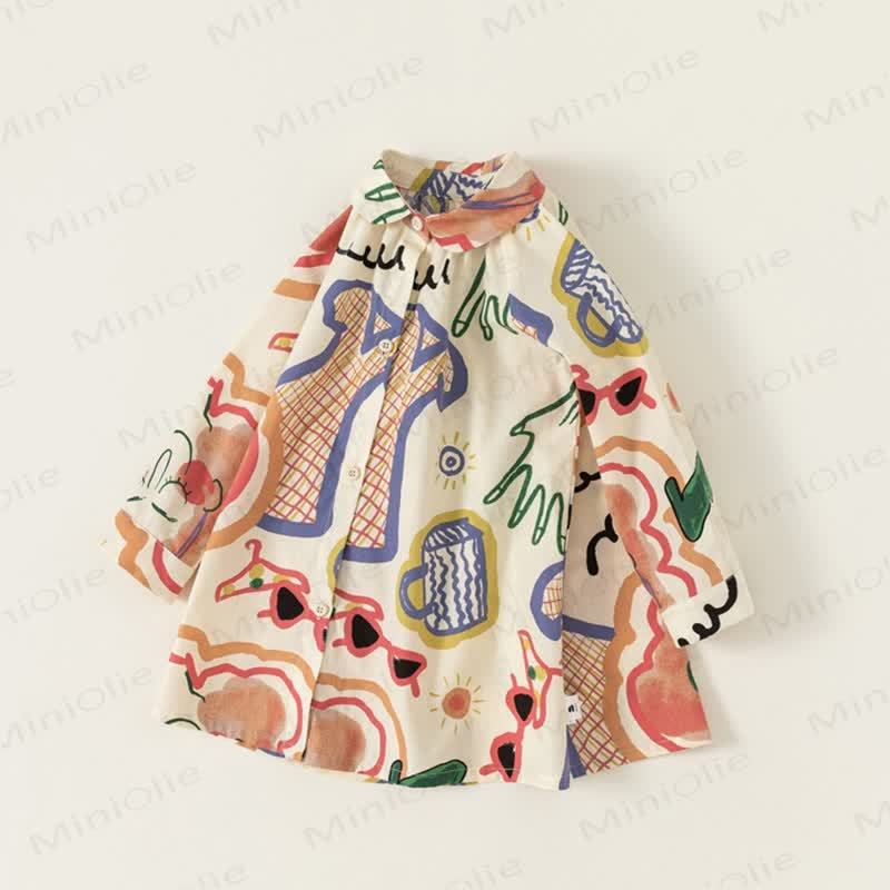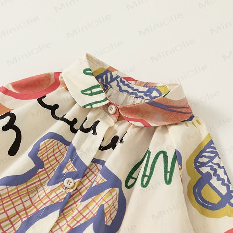 Vestito con colletto a revers e graffiti astratti per bambina